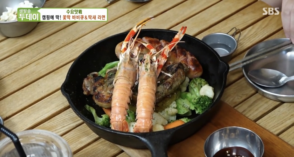 SBS 생방송 투데이 방송시간: 2022년 6월 22일 저녁 7시 수요맛전 - 이색캠핑맛집 대결 아래에서 생방송투데이 바비큐 플래터,이색 캠핑 맛집 대결 제주 딱새우 캠핑 ,바비큐 플래터 식당 위치 어디