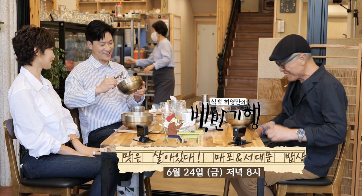 2022년 6월 24일 금요일 식객 허영만의 백반기행 방송에서는 '핫한 조화 ! 마포& 서대문 밥상' 편으로 함께 마녀는 살아있다에서 연기하게 된 국민악녀 이유리와 절대 미각 정상훈이 일일 식객으로 출연하여 맛집을 방문했습니다.