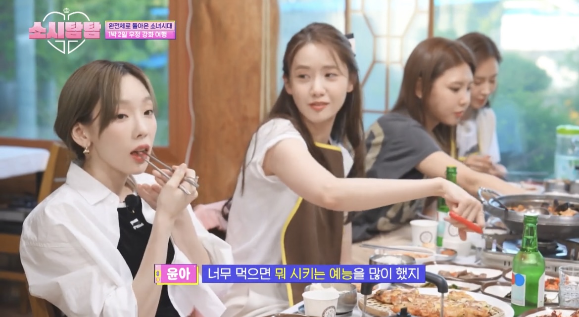 이슬만 먹을것 같은 소녀시대들도 술도 마시고 밥도 잘먹네요! 태연은 이런 예능에서 밥만 먹는것에 약간의 불안함? 눈치작전을 내비치기도 했는데, 정말 인기 있었던 오랜만에 하나로 뭉친 소녀시대 멤버들의 예능은 어떨지 기대됩니다.