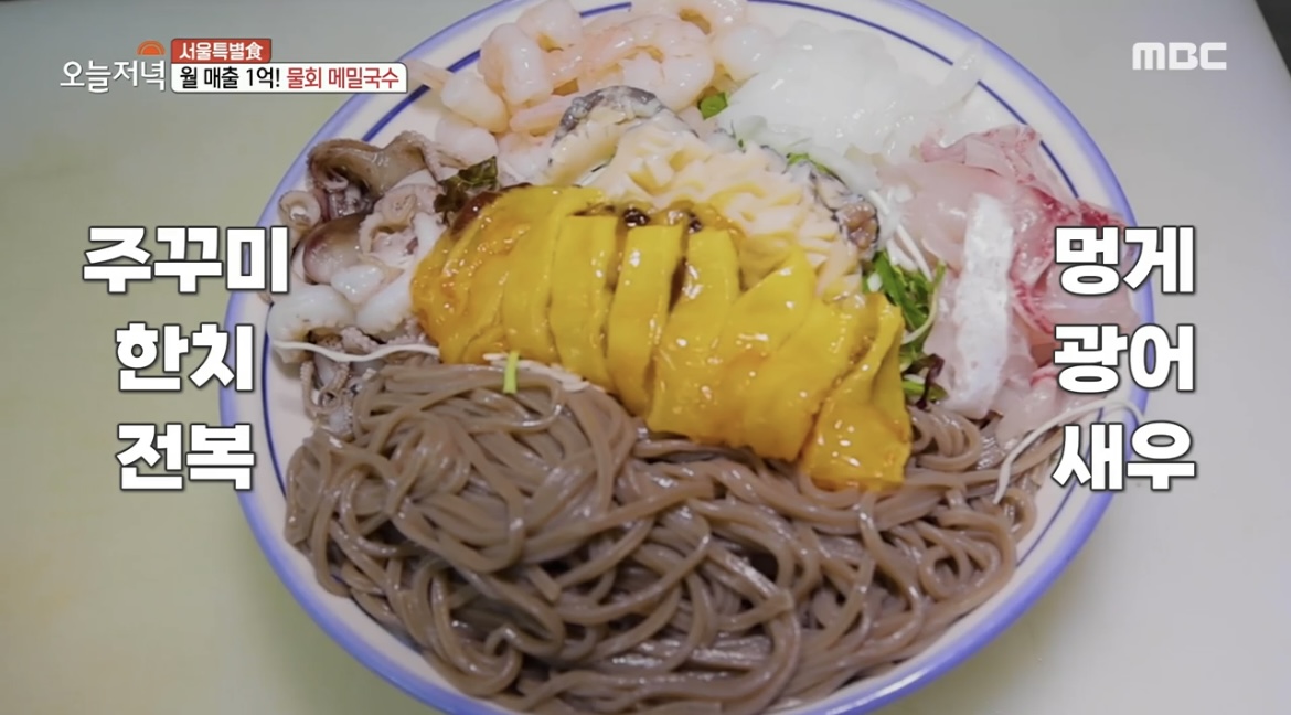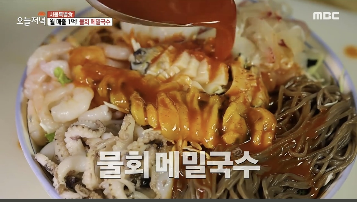 2022년 7월 7일 생방송 오늘저녁 방송에서는 서울특별식 에서 월매출 1억의 식당 물회메밀국수 회김밥 식당이 소개 되었습니다.