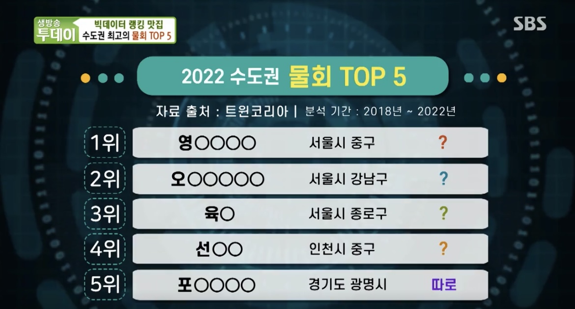식신이 분석한 빅데이터를 활용해 수도권 최고의 주제별 맛집 TOP5를 알아보는 식신*생방송투데이