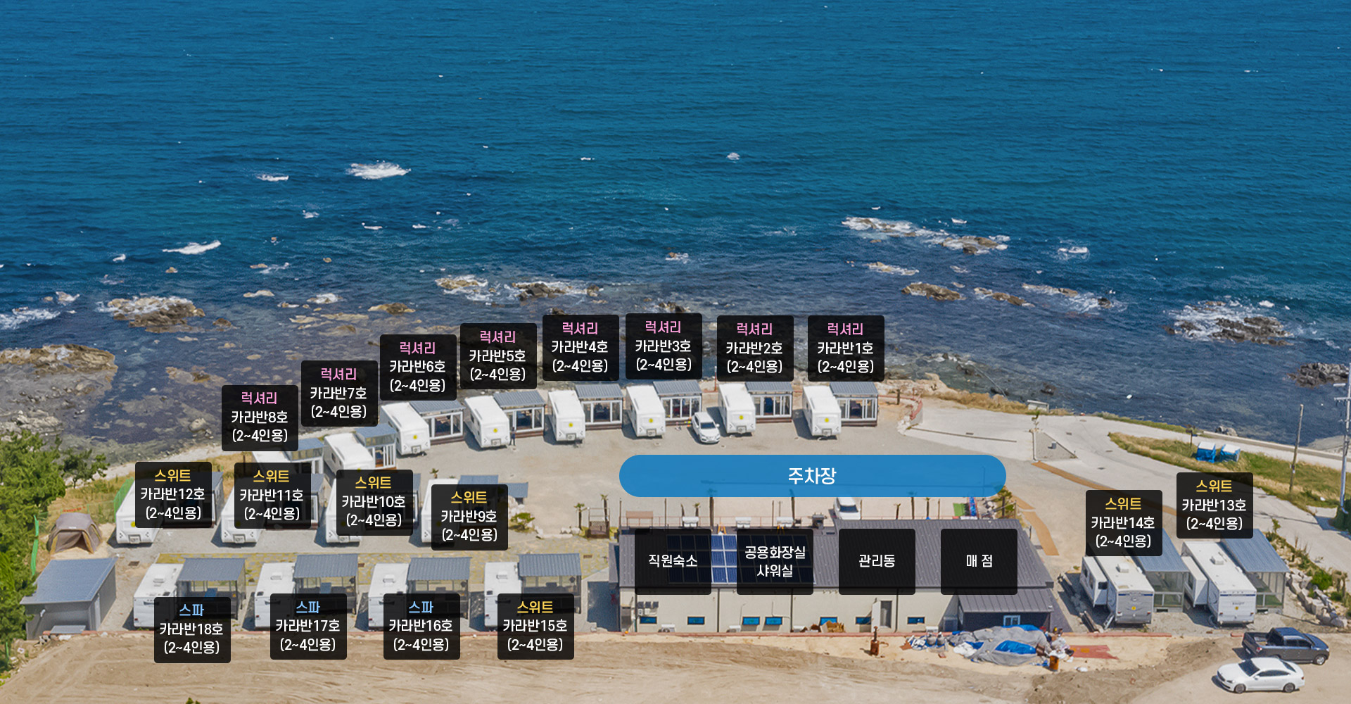 카라반 배치도만 보셔도 아시겠죠? 전 객실 바다 전망대입니다.