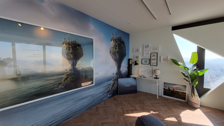60층에서 내리면 바로 전망대가 나오고 바로 사진전으로 연결됩니다.
