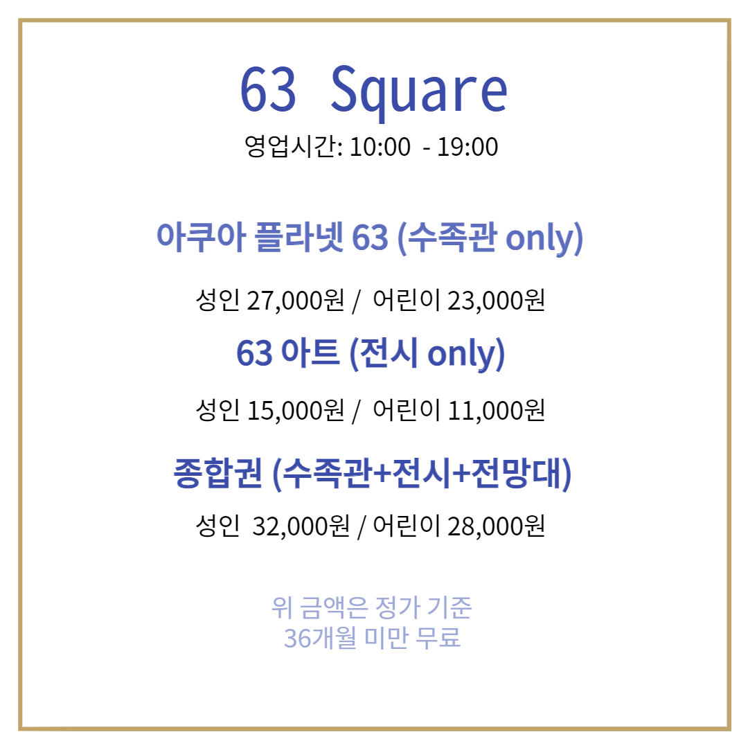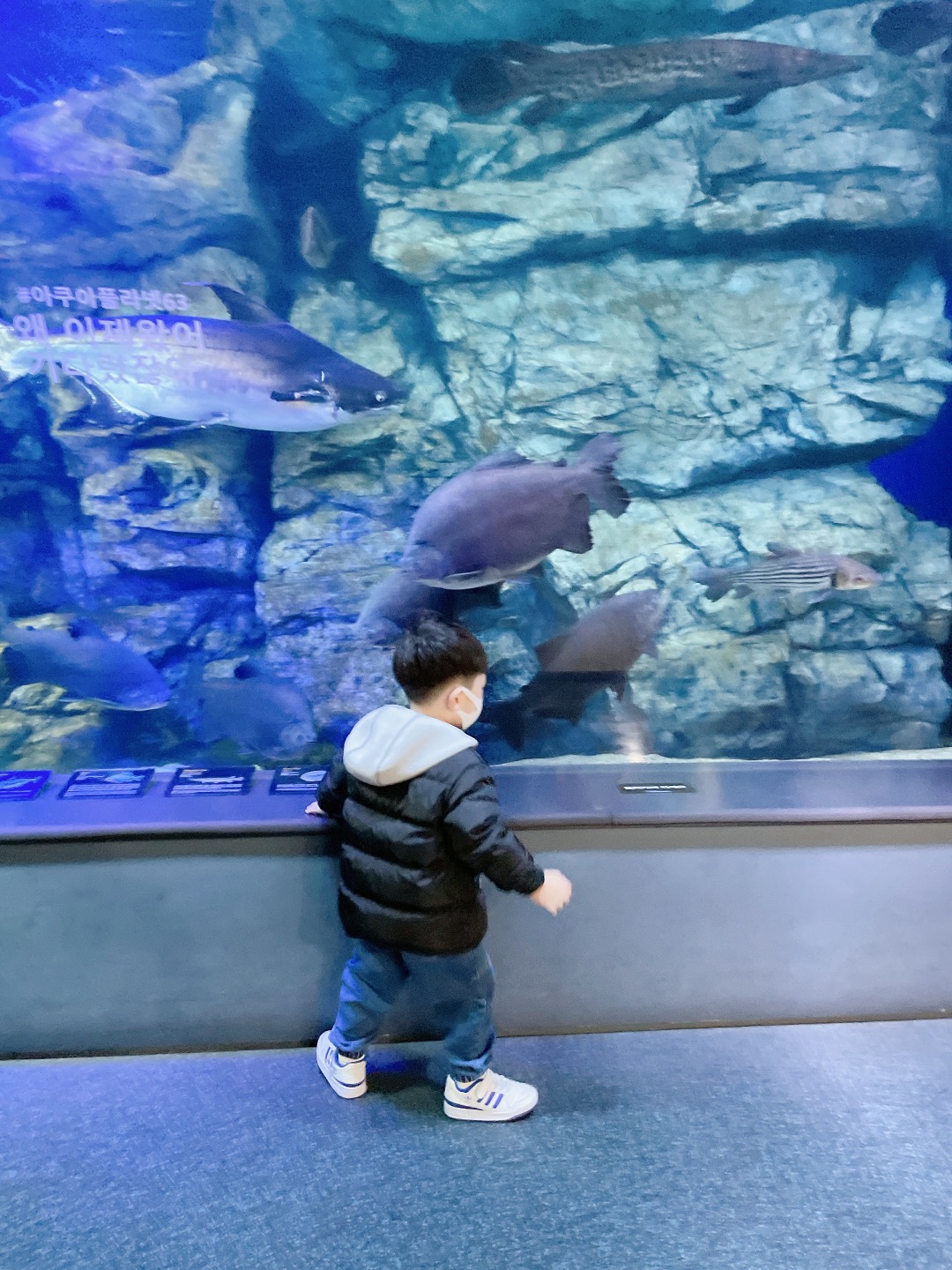 수족관을 좋아하는 수호와 가까운 여의도 63빌딩에 가서 아쿠아 플라넷과 63아트에서 에릭요한슨의 사진전까지 관람하고 왔어요 .