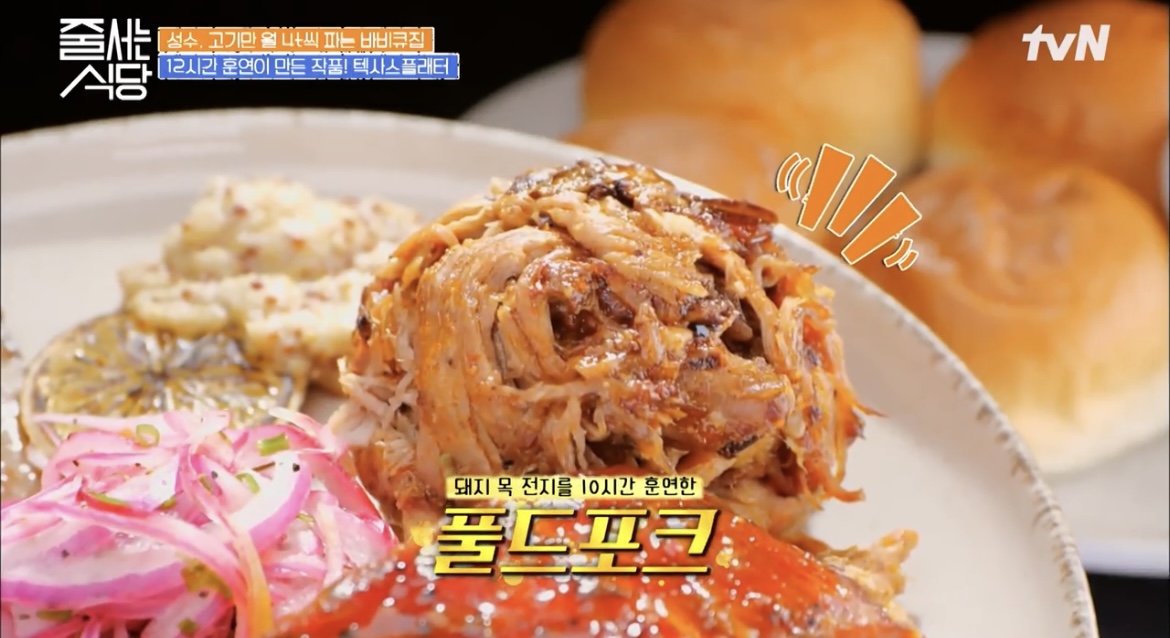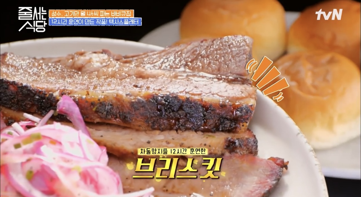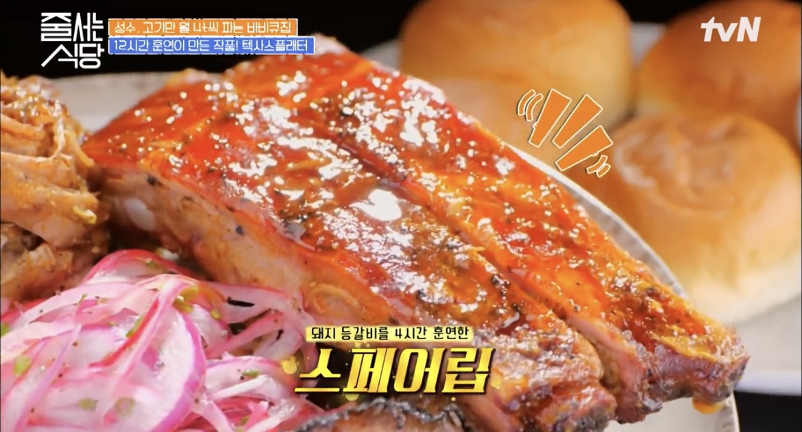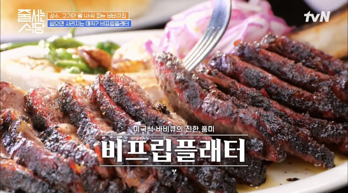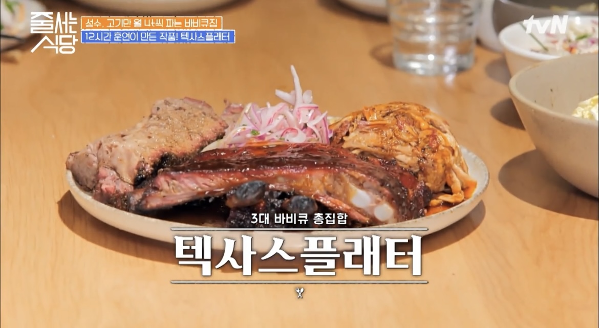 줄서는 식당 줄식당 성수동 훈연바비큐 비프립플래터 포르게타 텍사스플래터 브리스킷 스페어립 폴드포크 온주완 이윤지 33회 맛집 위치 어디 정보