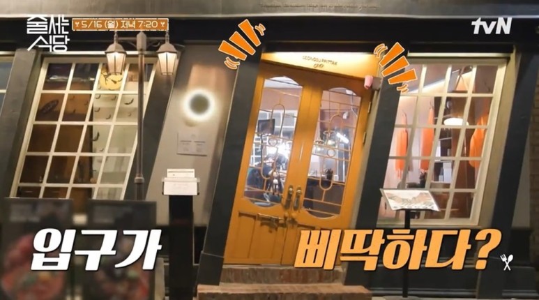 박나래와 햇님은 이식당의 문을 보고 깜짝보고 놀라는데, 문 뿐만 아니라 정면에 보이는 벽과 창문이 삐딱하게 서있어서 특이한 인테리어로 많은 이들을 관심을 받고 있는 곳입니다.