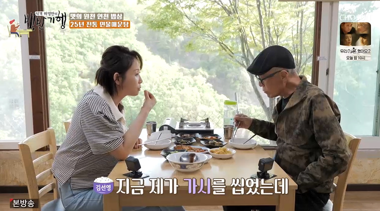김선영과 식객 허영만은 고소한 콩 향기가 포근하게 반겨주는21년 된 화덕 가마솥에 매일 직접 두부를 만들어 쓰는 두부전문점과 연천 특산품인 율무를 활용해 특별한 백숙을 내주는 식당,한탄강 주상절리 절벽 위에서 민물매운탕을 먹을수 있는 집을 방문하며민물매운탕과 함께 반찬으로 내어진 붕어찜은 비린내 없이 고소한 맛이 감탄을 자아냈습니다.