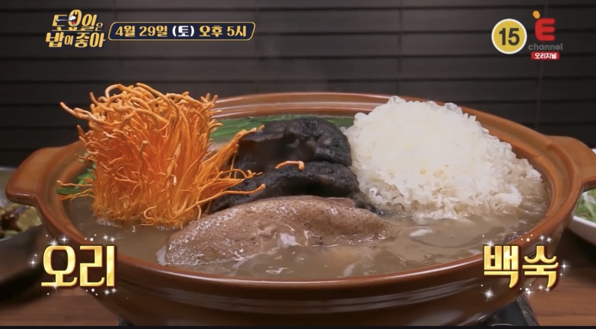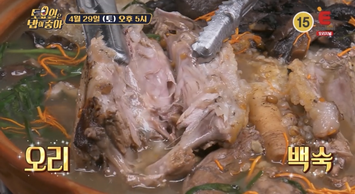 토요일은 밥이좋아 토밥즈 가 방문한 오리백숙 능이오리백숙의 능이버섯은 손바닥보다 커서 국물이 무척 시원하고 찐하다고 하는데요, 오리백숙 한번 마시면 건강이 저절로 좋아지는 맛이라고 합니다.