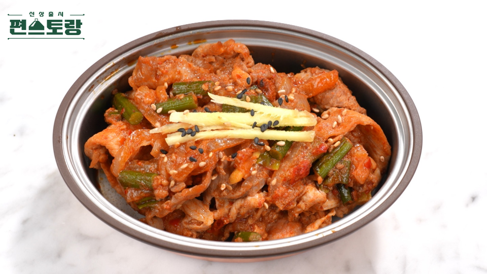 2. 그릇에 제육볶음을 담고 채 썬 생강을 올려주면 완성!