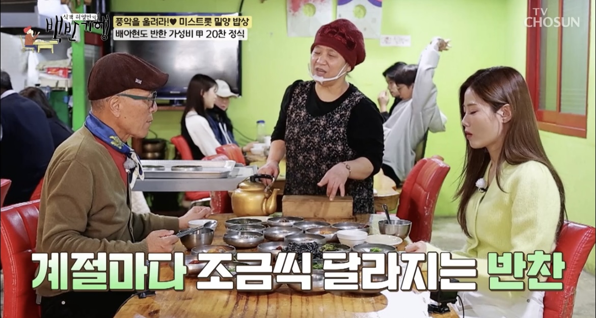 허영만은 배아현에게 "사찰에 올 일이 잘 없지 않냐"고 물었고 배아현은 "어머니와 절에 자주온다"고 하며. 허양만은 흥이 나는 밀양 밥상을 준비했다고 전했고 배아현은 설렌다고 하였는데요, 두 사람이 가장 먼저 찾은 맛집은 바로 20찬 정식이 나오는 곳으로 식당에 들어서자 배아현을 알아 본 손님들은 TV보다 실물이 낫다며 극찬했습니다. 허영만은 배아현이 '꺾기 인간문화재'라며 자신도 트로트에 관심이 있다고 도전장을 내밀었다고 합니다.